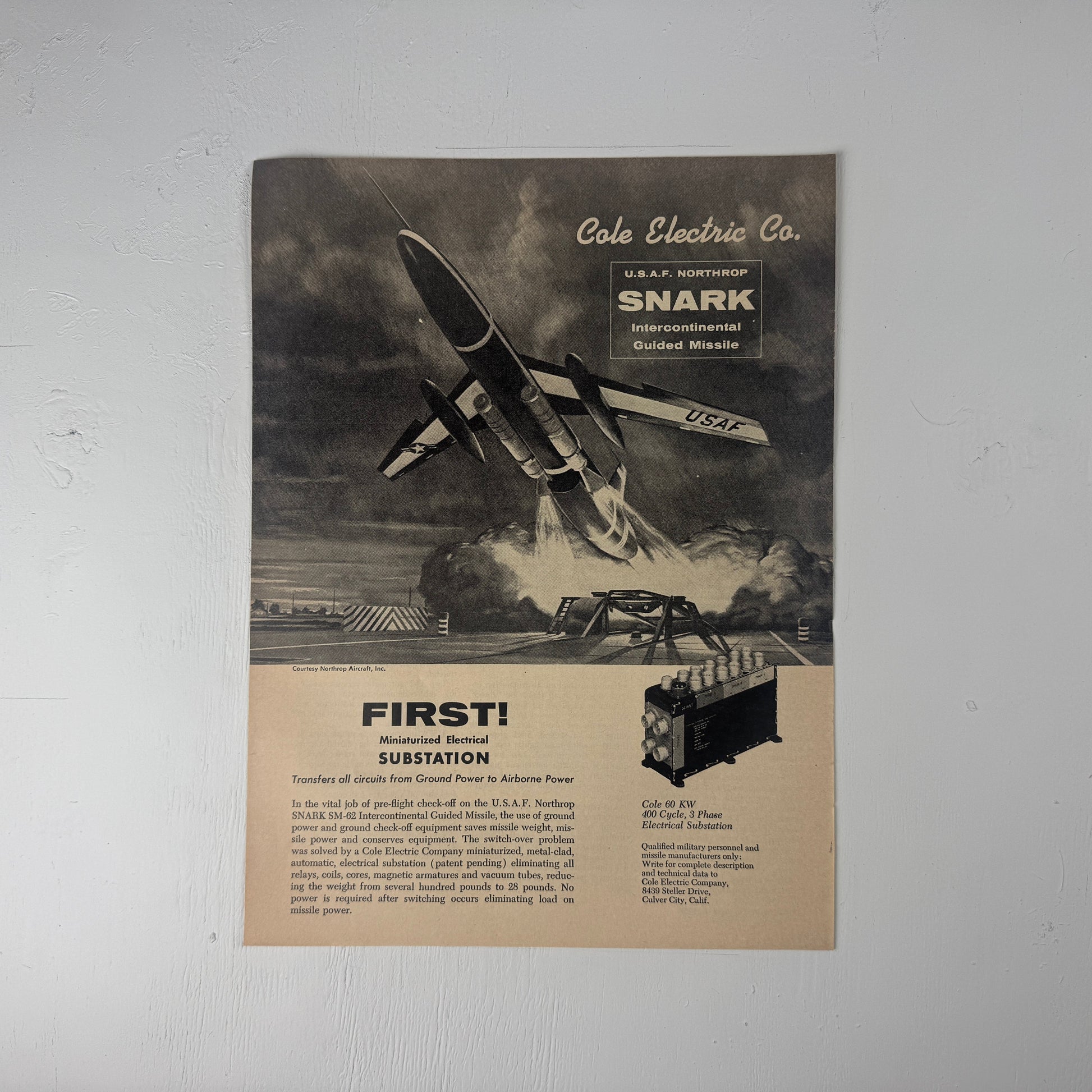 This original print advertisement was removed from the May 1, 1957 issue of Aviation Week.
